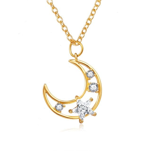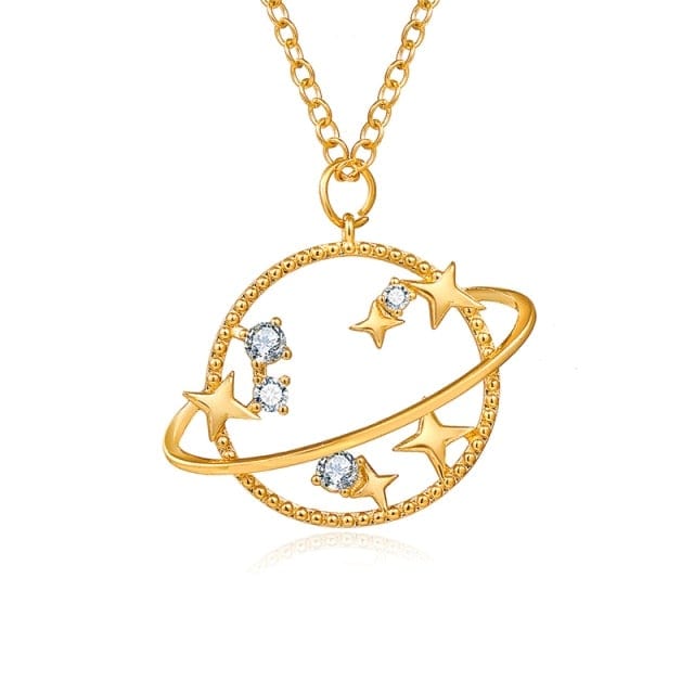 17KM Cute Gift Crystal Planet Moon Pendent Necklace For Women Fashion Gold Rhinestone Star Cross Necklaces Gift Wedding Jewelry