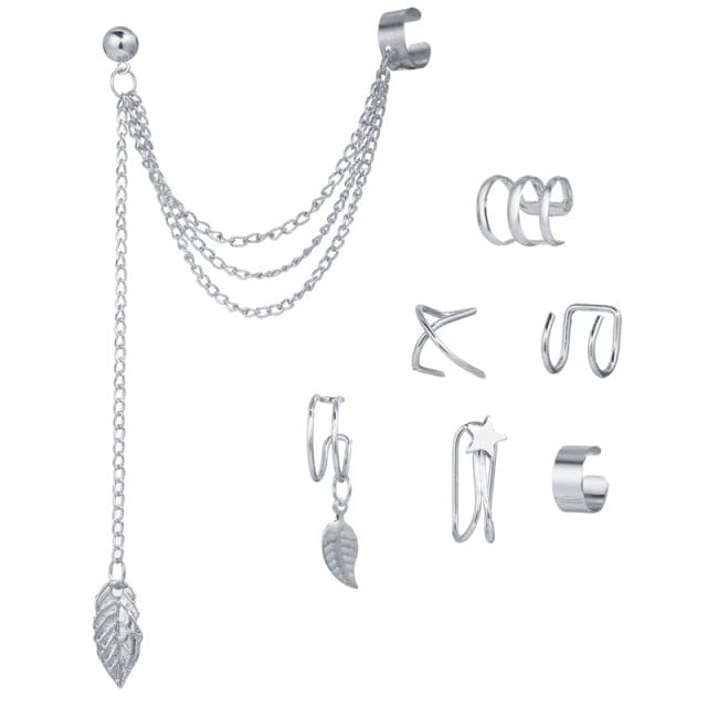 17KM Gold Leaves Ear Cuff Black Non-Piercing Ear Clips Fake Cartilage Earrings Clip Earrings For Women Men Wholesale Jewelry