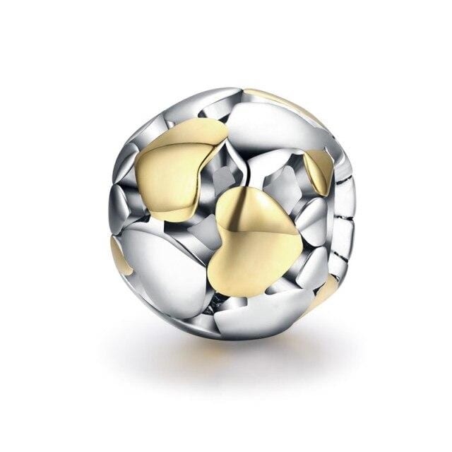 BAMOER 100% 925 Sterling Silver Luminous Heart & Gold Heart Charms Beads fit Charm Bracelet Valentine Day Gift S925 SCC537