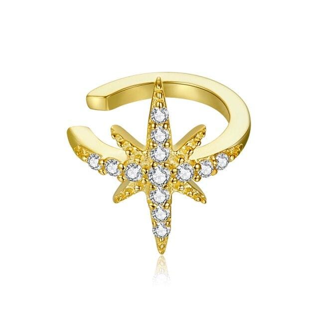 bamoer 925 Sterling Silver 14K Gold Plated Cubic Zirconia Sparkling Huggie Ear Cuff Gold Earrings for Women | Clip On Cartilage