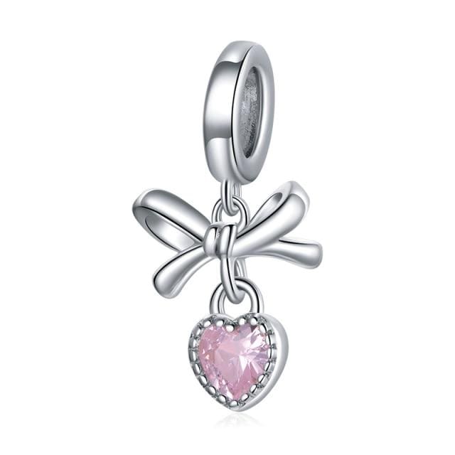 bamoer 925 Sterling Silver Big Hole Pink Heart Charm Sunflower Cross Bear Pendant for Original Bracelet Bangle DIY Accessories L