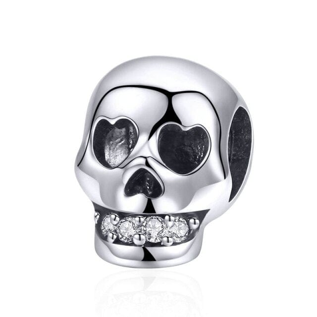 BAMOER 925 Sterling Silver Christmas Gift Skull Head Beads Charm fit Charm Bracelet Halloween Jewelry Making Accessories DIY