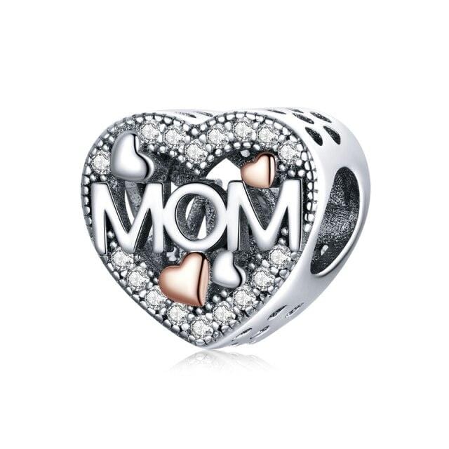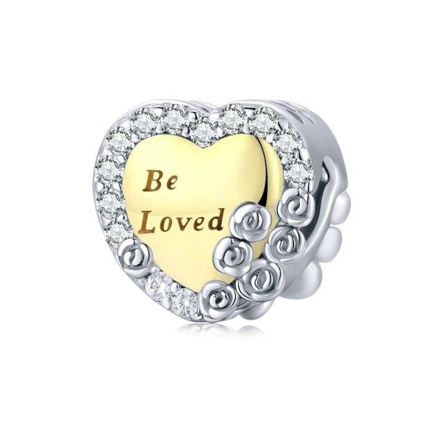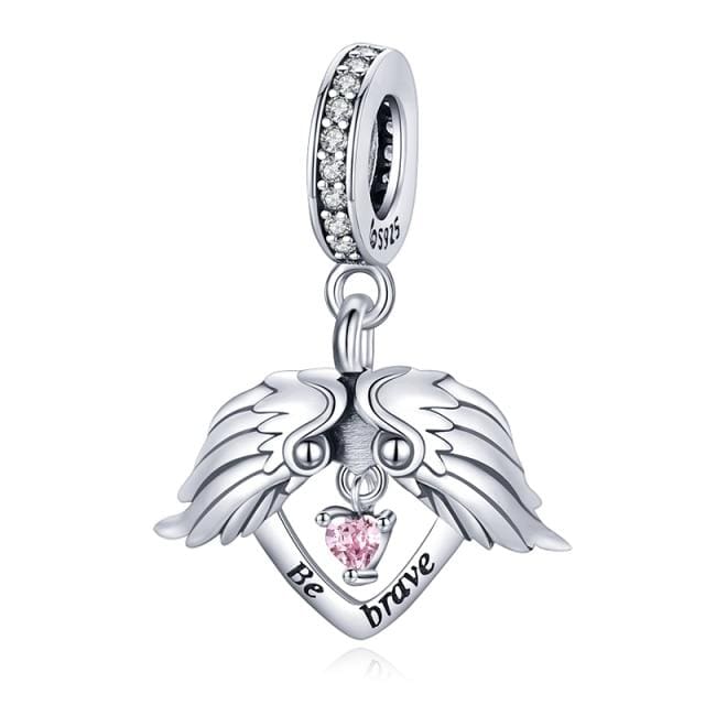 bamoer 925 Sterling Silver Golden Heart Bead Rose Love Wing Pink Crystal Charm for Original Bracelet Bangle DIY Anniversary