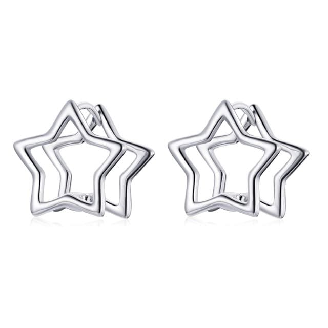 bamoer 925 Sterling Silver Simple Double Heart Stud Earrings Star Earrings Infinite Love Earring for Women Silver Jewelry BSE501