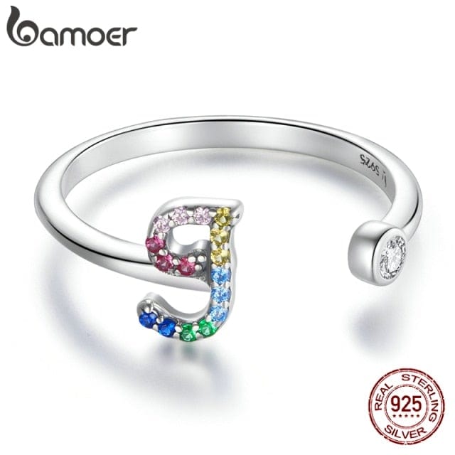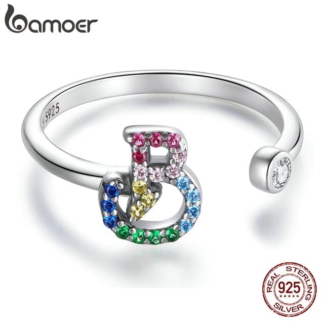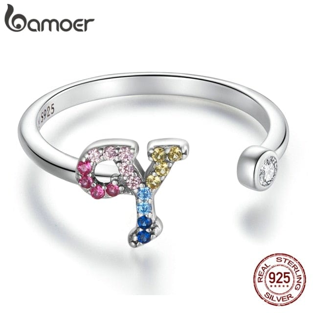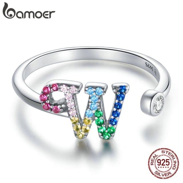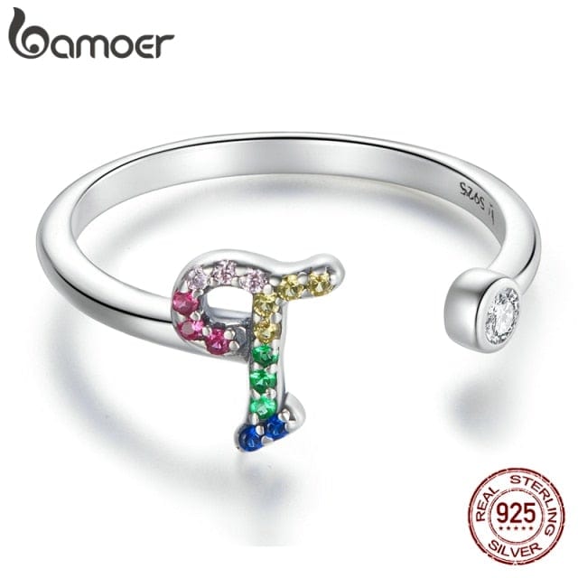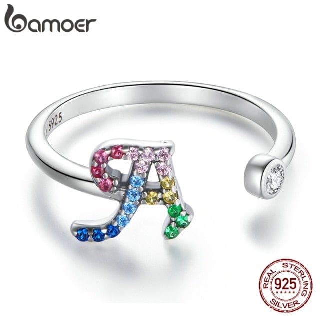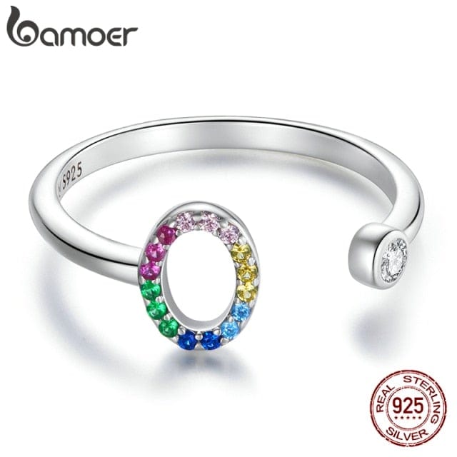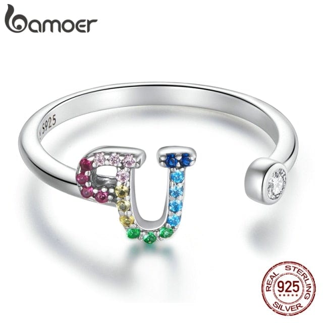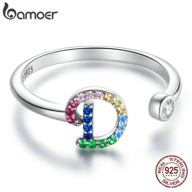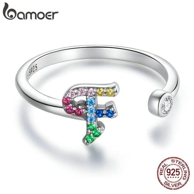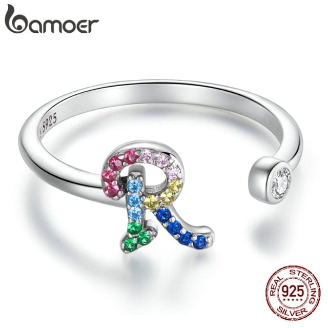bamoer 925 Sterling Silver Stackable Initial Letter Rings for Women, Capital Letter Adjustable Ring Size 6-8 Jewelry SCR723