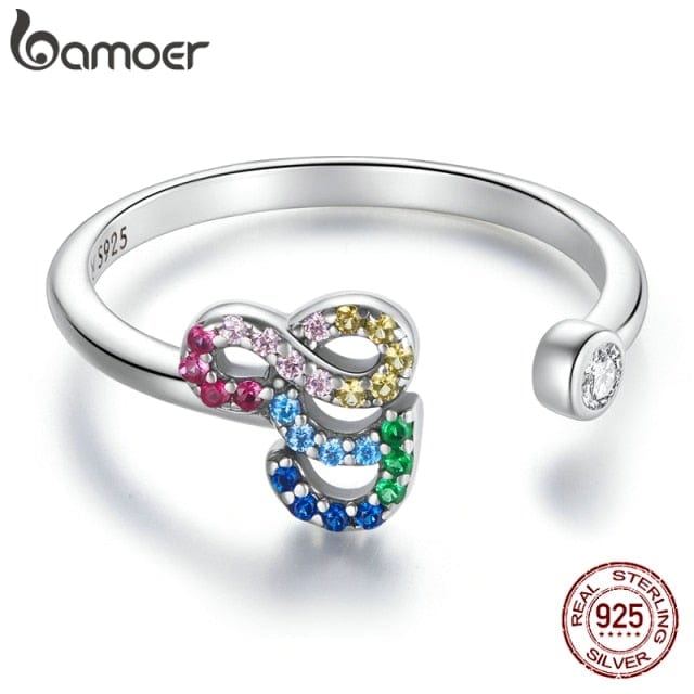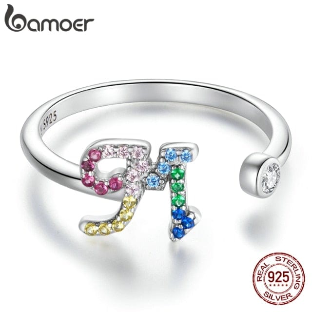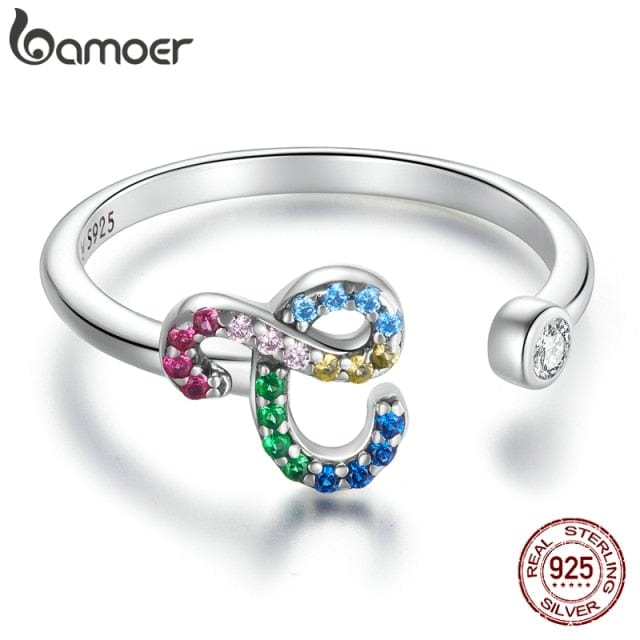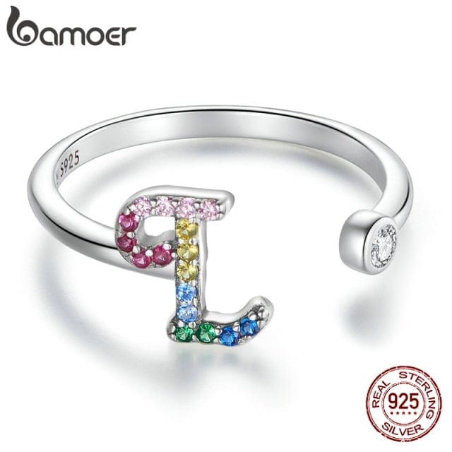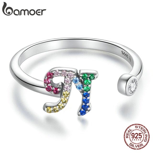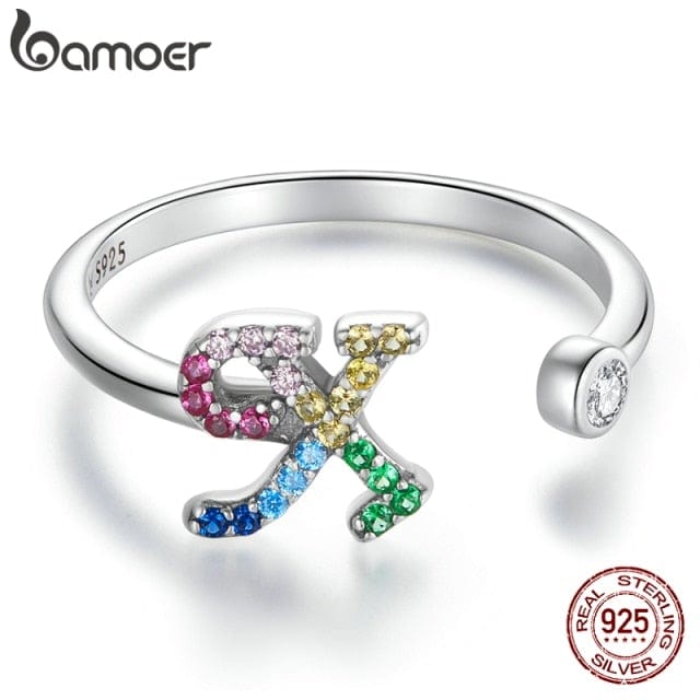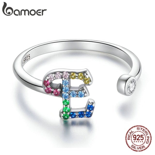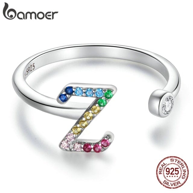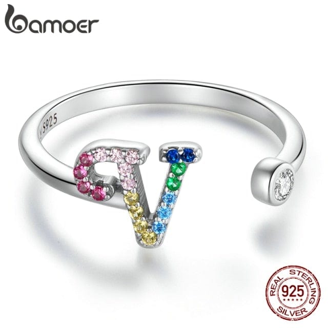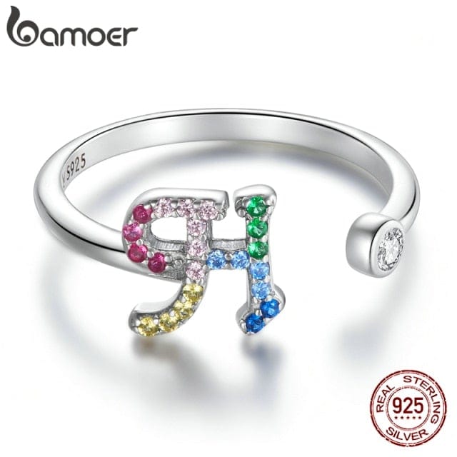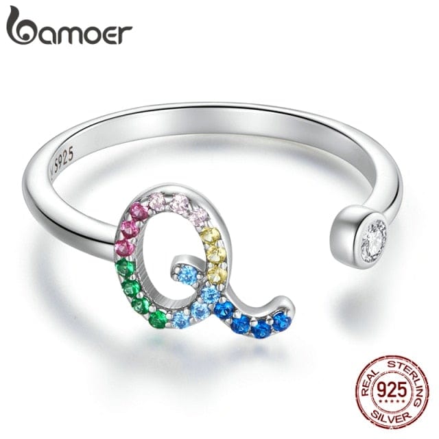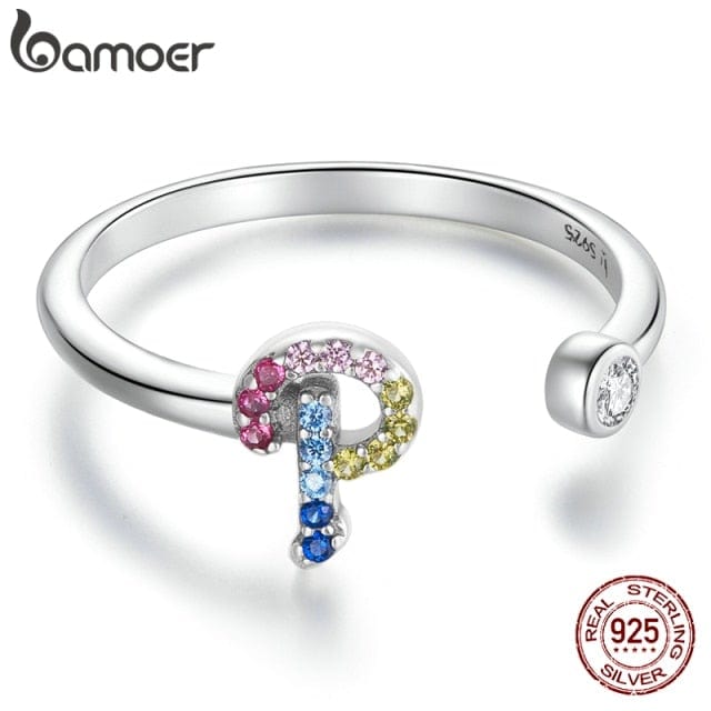 bamoer 925 Sterling Silver Stackable Initial Letter Rings for Women, Capital Letter Adjustable Ring Size 6-8 Jewelry SCR723