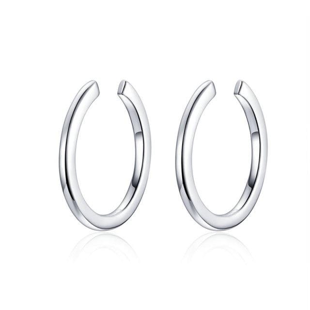 Bamoer Authentic 925 Sterling Silver Half Circle Stud Earrings for Women Fine Party Jewelry Gift Bijoux Minmalistic Ear Studs