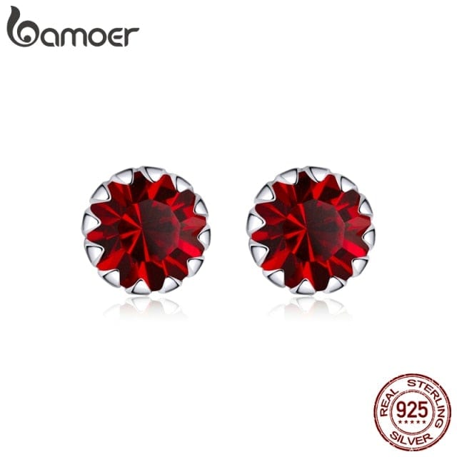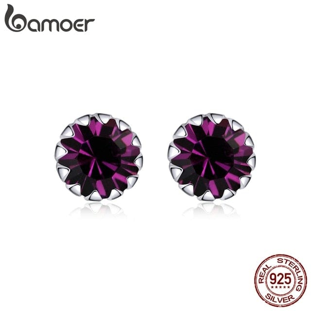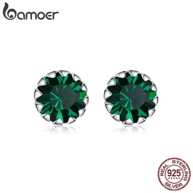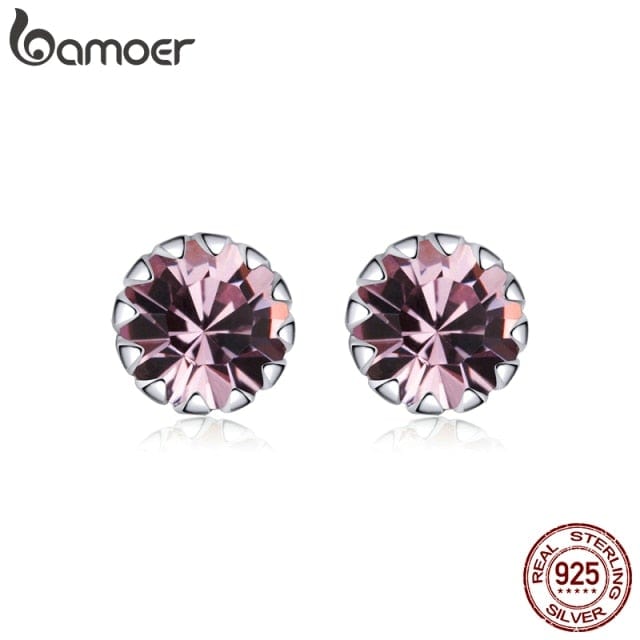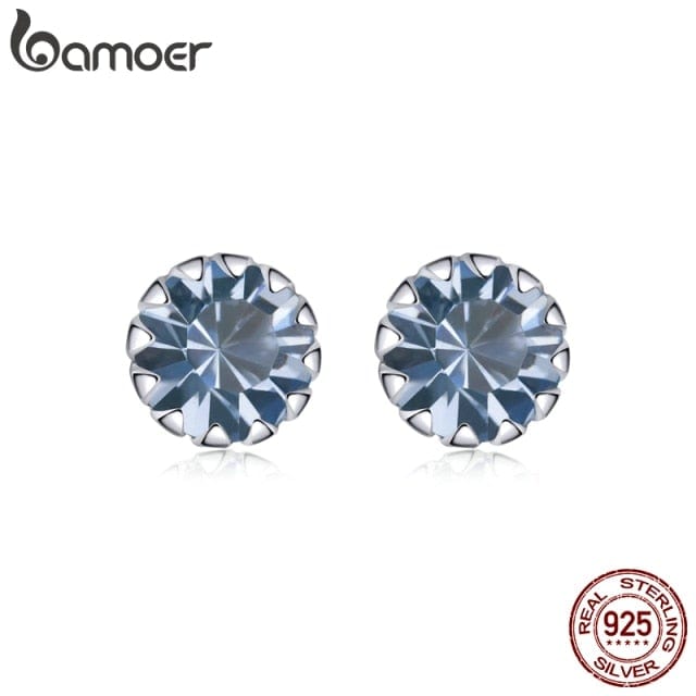 bamoer Birth Stone AAA Cubic Zircon Stud Earring 925 Sterling Silver Birthstone Ear Stud April Gifts Silver Jewelry SCE862