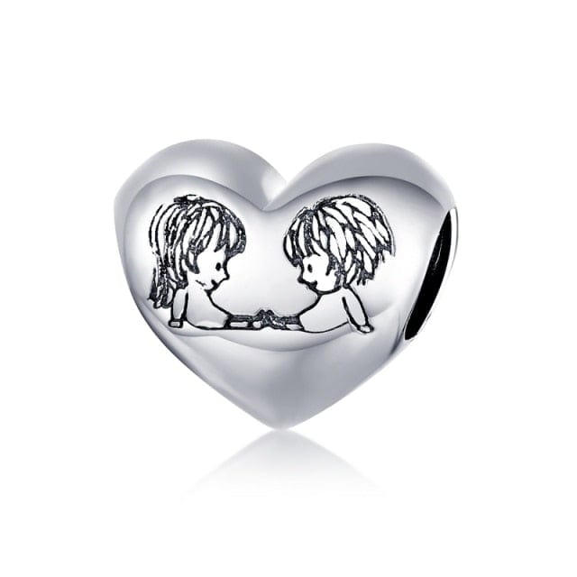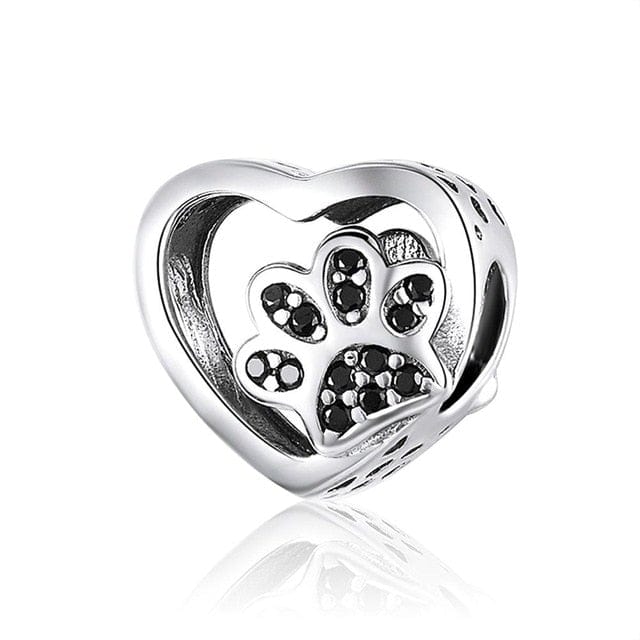BAMOER Cat Love Heart-shape Charm 925 Sterling Silver Paw Footprints Heart Charms for Bangle Bracelet Fine Jewelry SCC1191