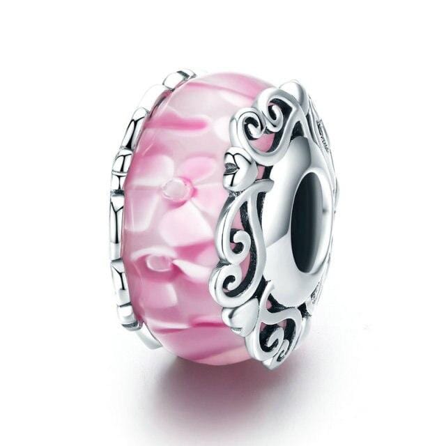 bamoer Cutting Murano Beads for Women Charm Bracelet or Bangle Genuine 925 Sterling Silver Flower Charm Fashion Jewelry SCC1282