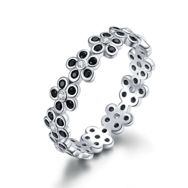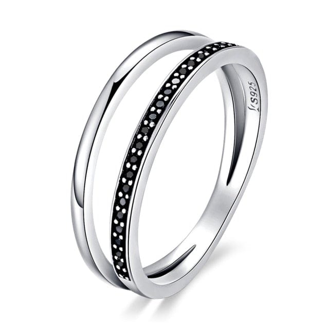 BAMOER Genuine 925 Sterling Silver Double Circle Black Clear CZ Stackable Finger Ring for Women Fine Silver Jewelry Gift SCR082
