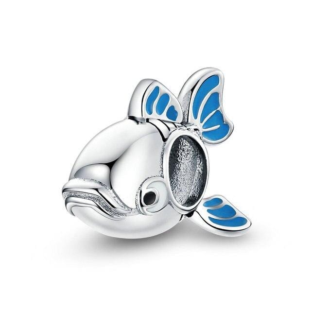 bamoer Genuine 925 Sterling Silver Yellow Enamel Clownfish Metal Charm for Original Silver Bracelet Bangle DIY Jewelry BSC206