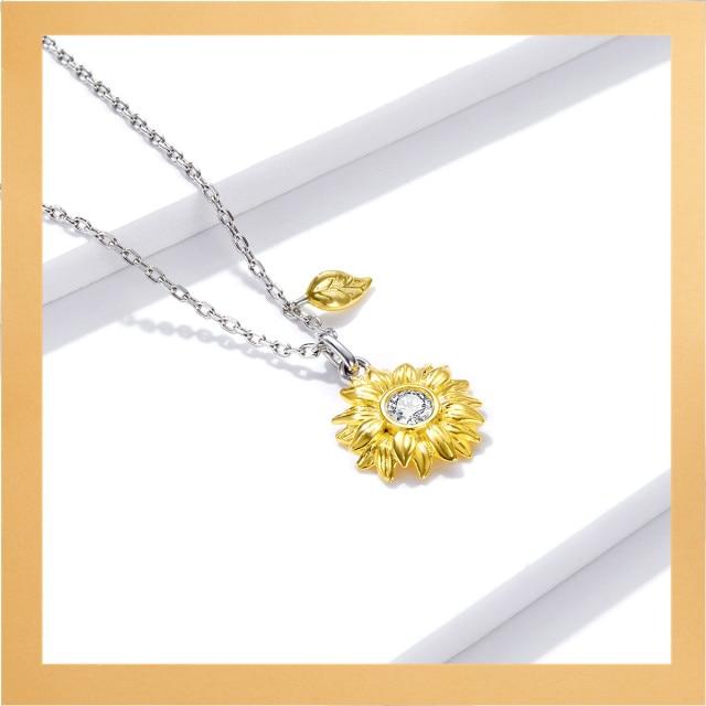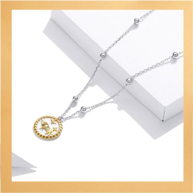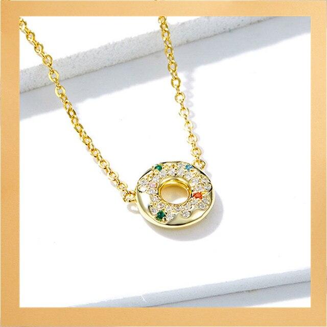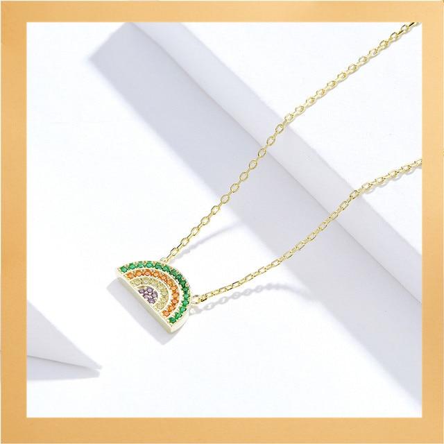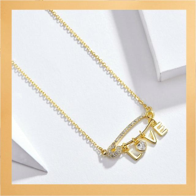 bamoer Gold Color Necklace Colletion 925 Sterling Silver Pin Love Letter Chain Necklace for Women Rainbow Design Jewelry