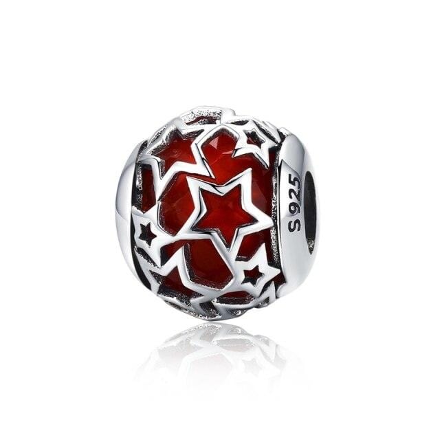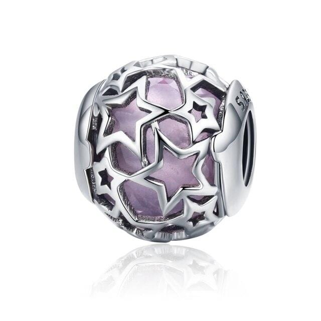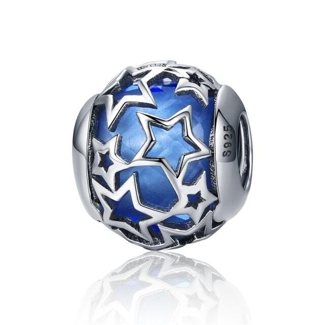 BAMOER Popular 925 Sterling Silver Shimmering Star Openwork Blue Crystal Beads fit Women Bracelets & Bangles Jewelry SCC411