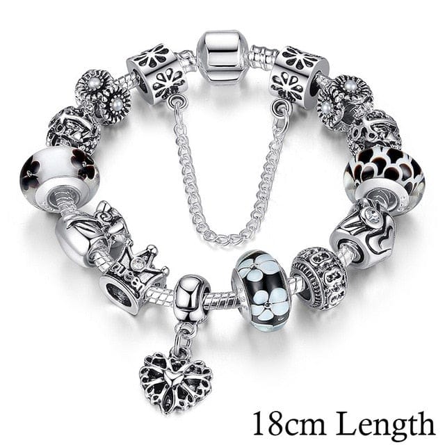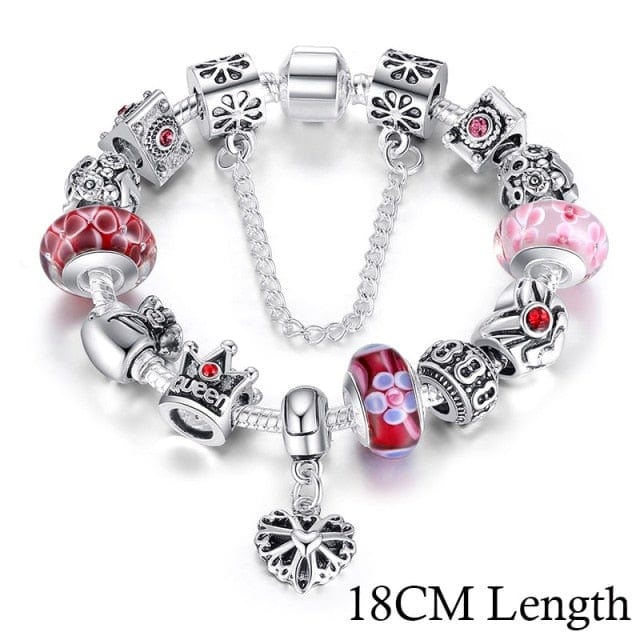 BAMOER Queen Jewelry Silver Plated Charms Bracelet & Bangles With Queen Crown Beads Bracelet for Women PA1823