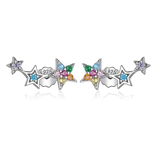 bamoer Rainbow Multiple Crystal Star Stud Earrings 925 Sterling Silver Earrings for Women Engagement Jewelry Five-pointed Star