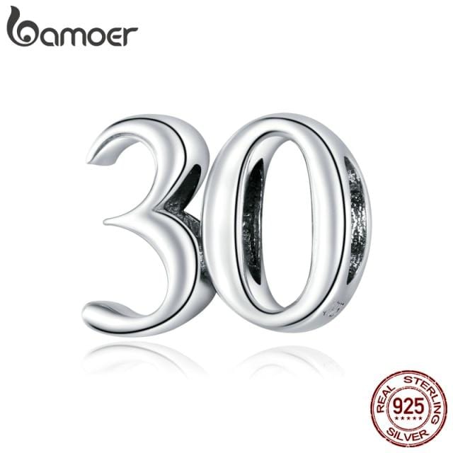 bamoer Real 925 Sterling Silver Simple Numbers Beads Protect Metal Charm fit Original Silver Bracelet Jewelry MakeSCC1622
