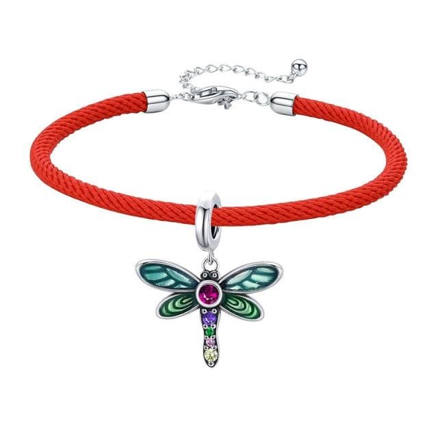 bamoer Red Rope Bracelet 925 Sterling Silver Enamel Fish Dragonfly Rainbow Beads and Charm DIY Bracelets Jewelry Accessories