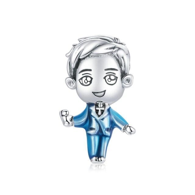 bamoer Silver Little Prince Princess Love Couple 925 Sterling Silver Character Charm Pendant for Girl DIY Jewelry SCC1814
