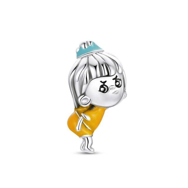 bamoer Silver Newborn Baby Little Girl Charm Sister Twins 925 Sterling Silver Charm for Original Bracelet DIY Jewelry SCC1844
