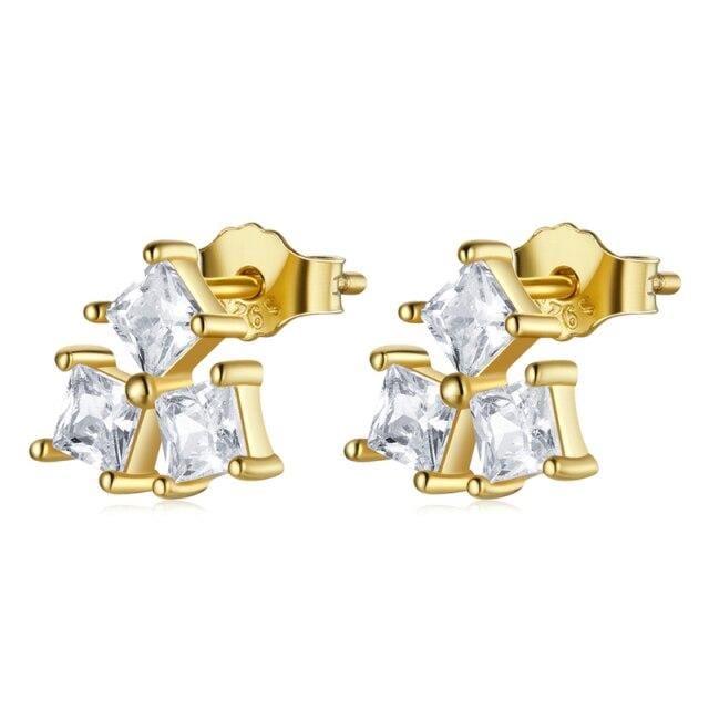 bamoer Spanish 925 Sterling Silver Multiple Zircon Crystal Stud Earrings Two Colors Gold for Women Engagement Jewelry SCE1184-A