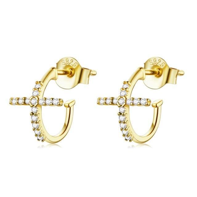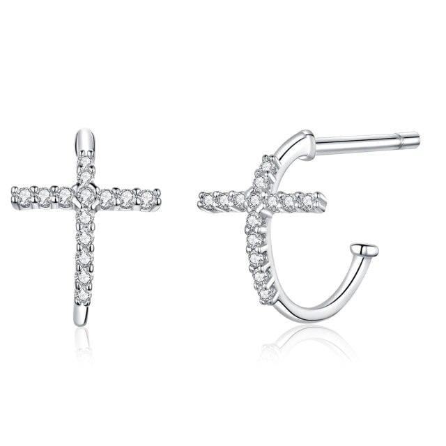 bamoer Sterling Silver 925 Hoop Earrings for Women Half Hoops Cross Silver Jewelry Brincos Wedding Fine Jewelry