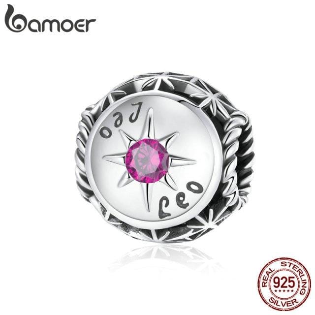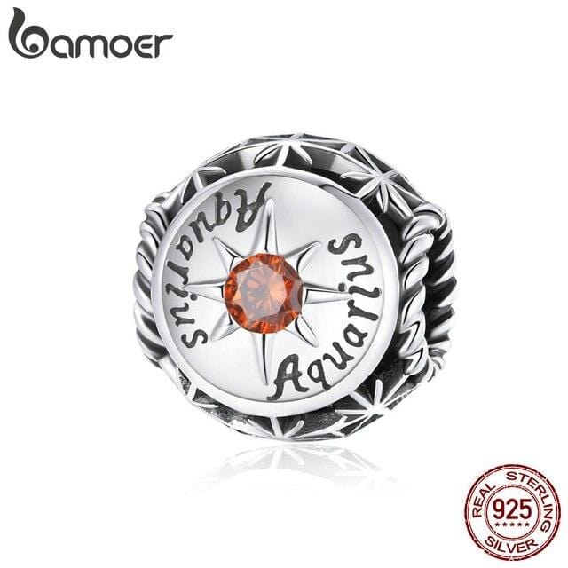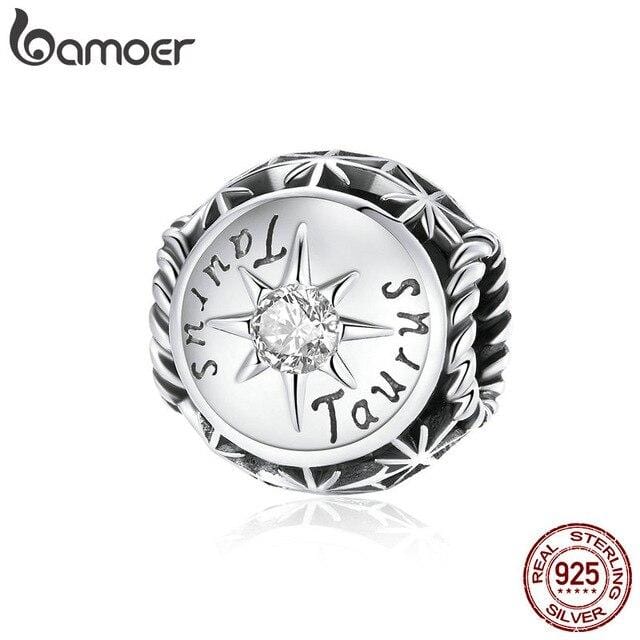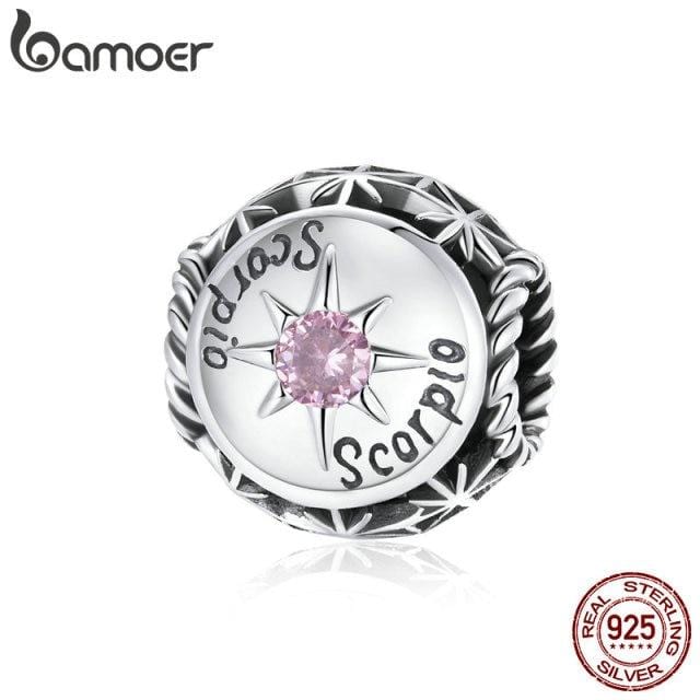 bamoer Zodiac Star Sign 925 Sterling Silver Charm Beads Fit for Charm Bracelets, 12 Constellations Cubic Zirconia Charm SCC1725