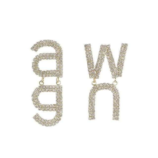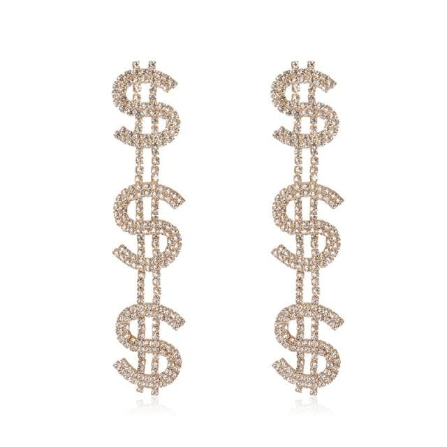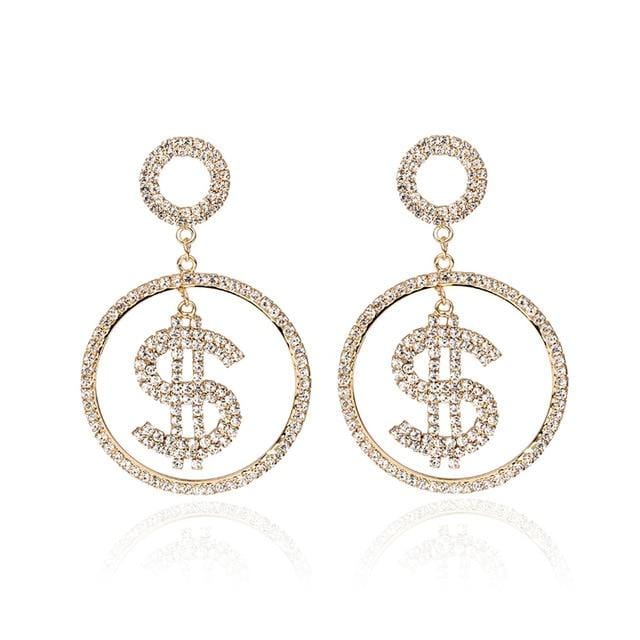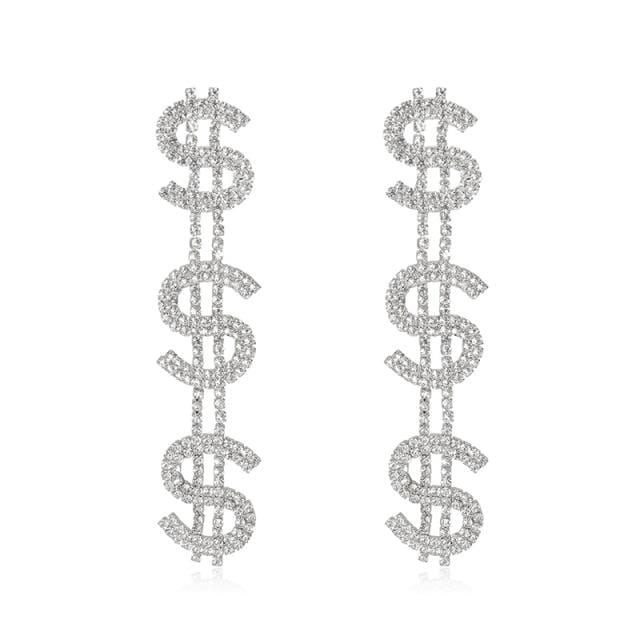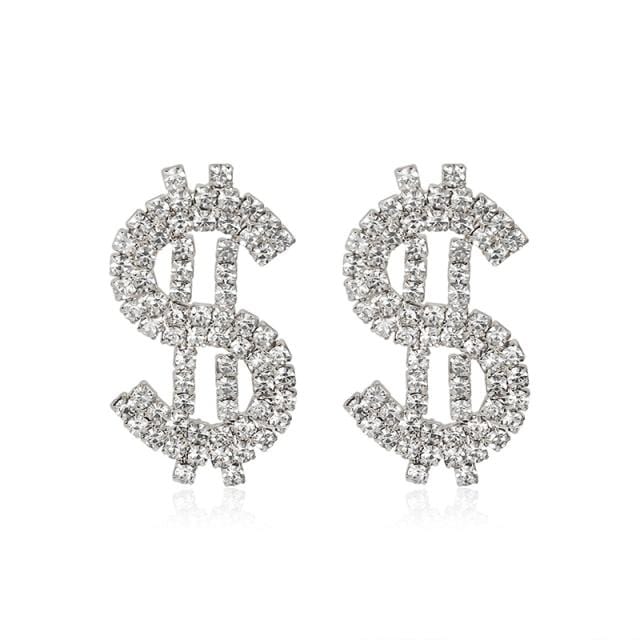 AENSOA Personality Super Shiny Rhinestone Dollar Pendant Drop Earrings for Women Charm Statement Earrings Fashion Jewelry Gift