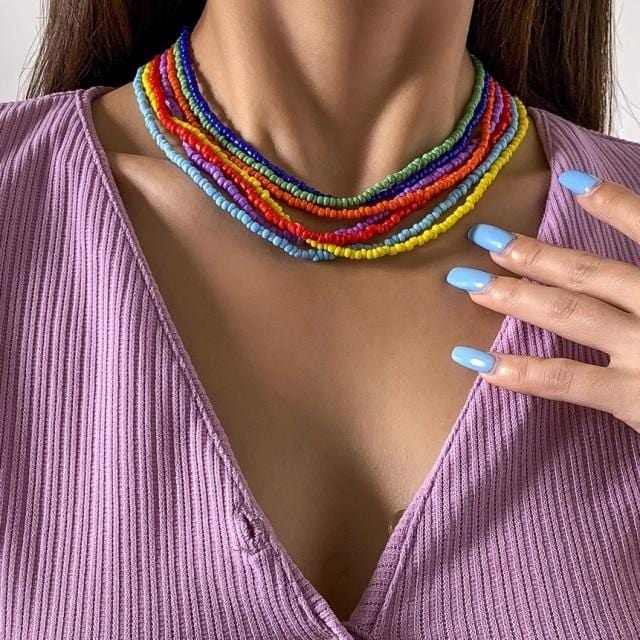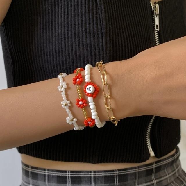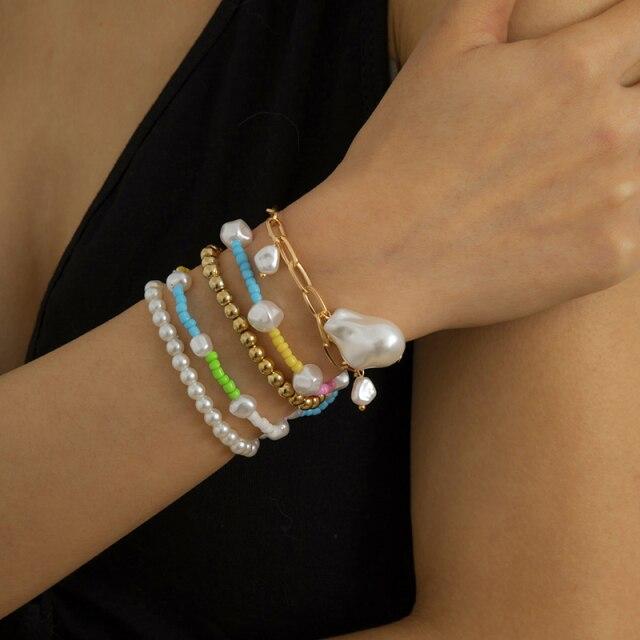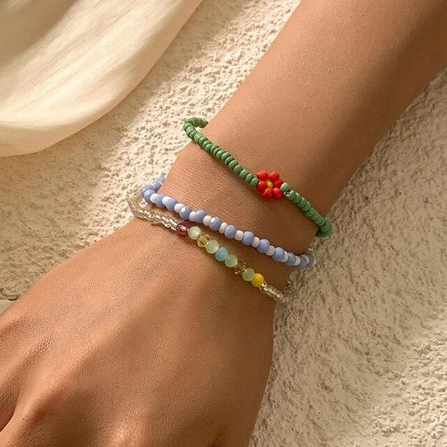 HangZhi 2020 New 7Pcs/Set Simple Fashion Multicolor Boho Handmade Elastic Seeds Beaded Bracelets for Women Jewelry Personality