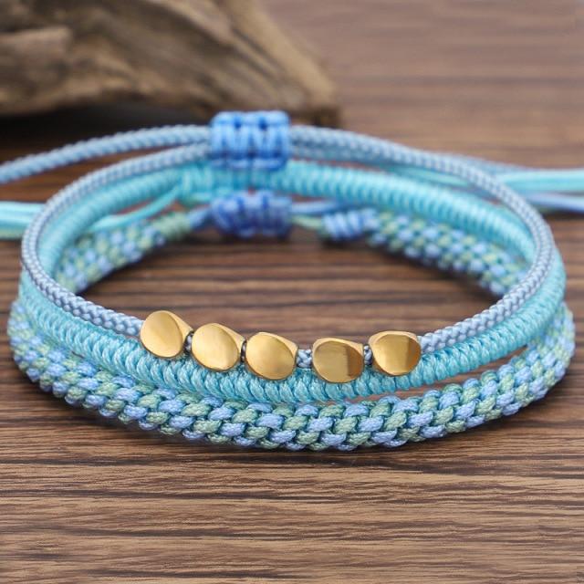 Tibetan Buddhist Braided Handmade Copper Beads Bracelet Lucky Rope Bracelet Bangles Women Thread Set Bracelets Wholesale QX-06
