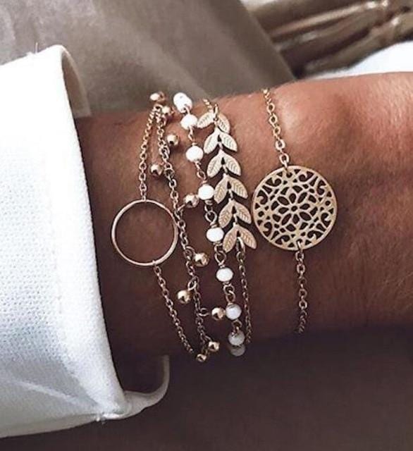 Tocona Bohemian Gold Tassel Bracelets for Women Summer Shell Clear Crystal Stone Pineapple Geometric Heart Bangle Jewelry