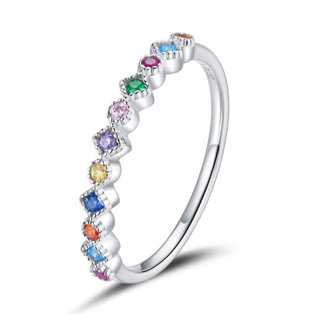 BAMOER 925 Sterling Silver Rainbow CZ Simple Fashion Finger Ring Stackable Band Rings For Women Classic Jewelry