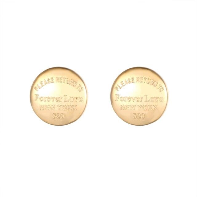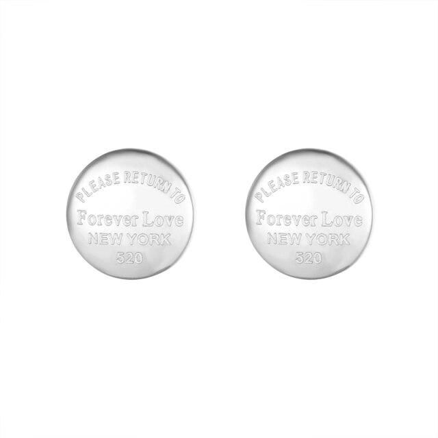 Classic Design Carved Forever Love Round Bean Stud Earring For Women Stainless Steel Top Quality Women Jewelry Earring Love Gift