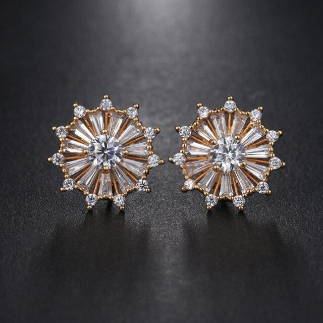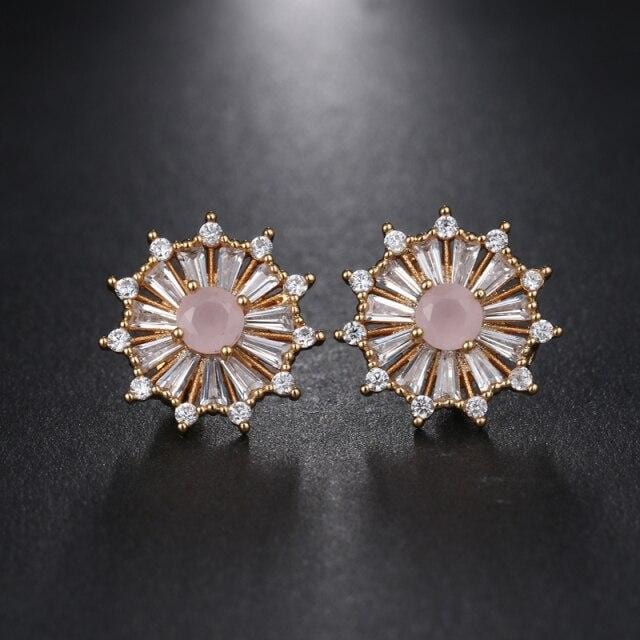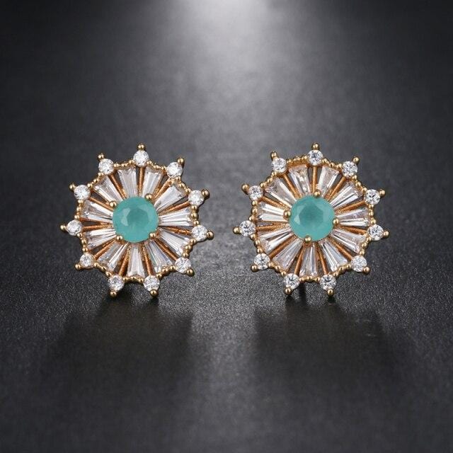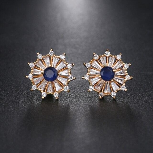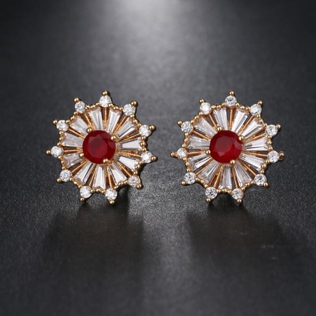 EMMAYA Brand Classic Red Pink Blue AAA CZ Crystal Flower Stud Earrings For Women Fashion Zirconia Jewelry