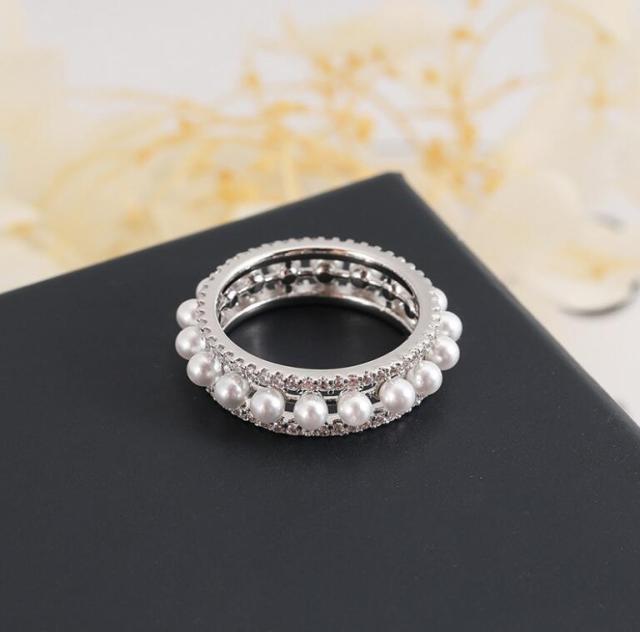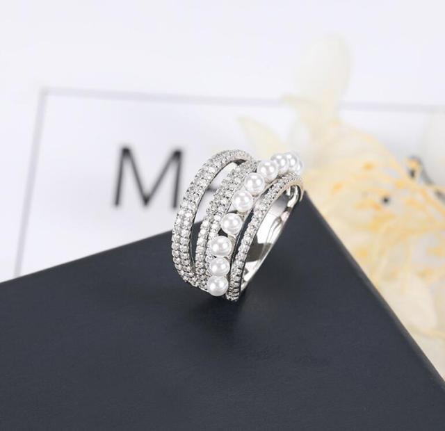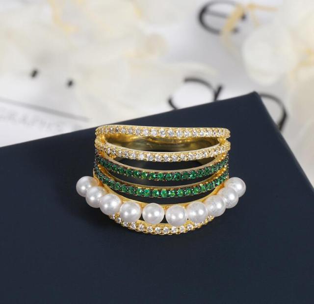 Fashion French romance women tender gorgeous forefinger multi-rings retro rhinestone green gem white pearl classic ring