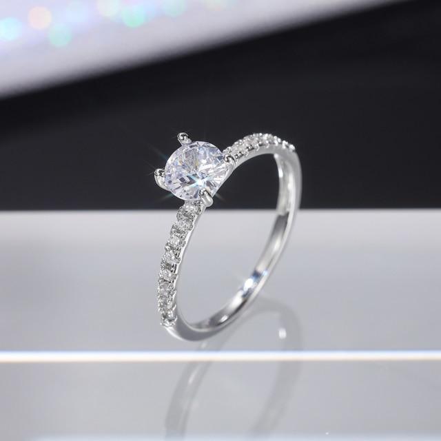 Huitan Classic 4 Claws Design Round Zirconia Women Wedding Engagement Rings 3 Colors Available Low-key Bridal Jewelry Hot Sale