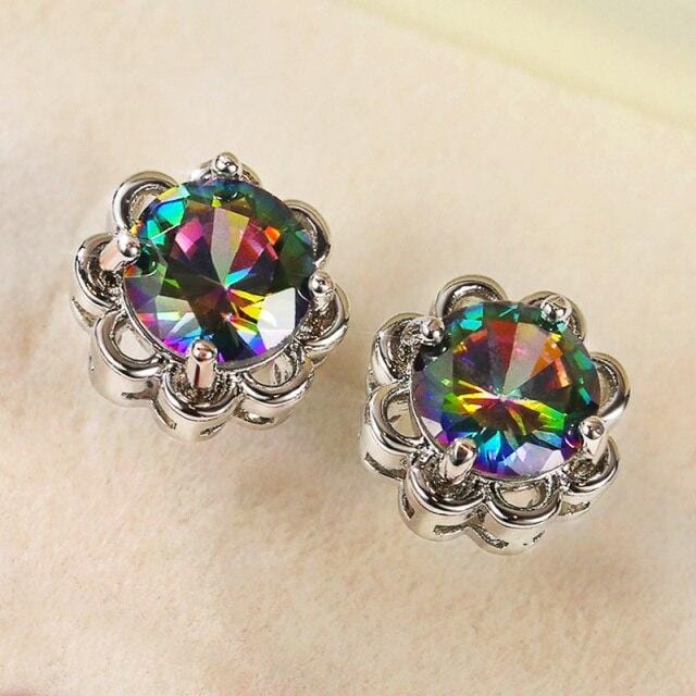 Huitan Classic Four Claw Design Multicolor CZ Stud Earrings Women Simple Stylish Female Accessories Daily Wear Versatile Jewelry