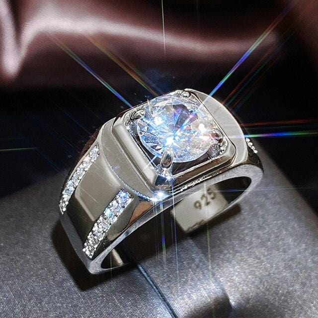 Huitan Gorgeous Men Wedding Rings Brilliant Cubic Zircon Noble Accessories for Male Classic Jewelry Brand Luxury Engagement Ring