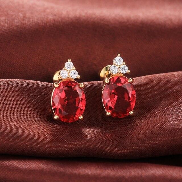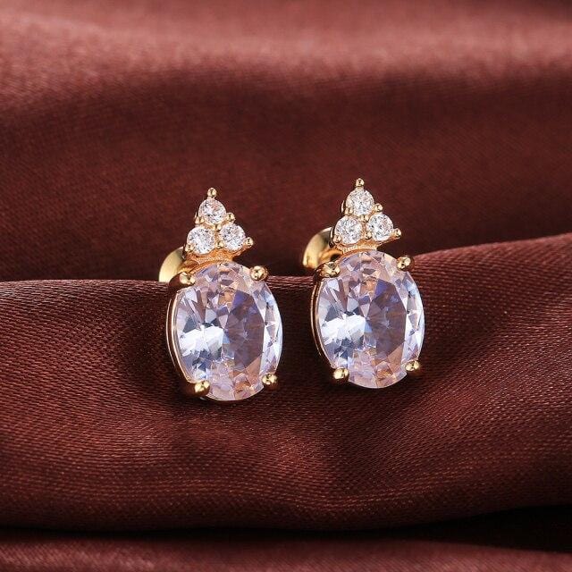 Huitan Luxury Big Oval Zircon Women Stud Earrings Simple Classic Design 8 Colors Versatile Female Earring Fine Gift Dropshipping