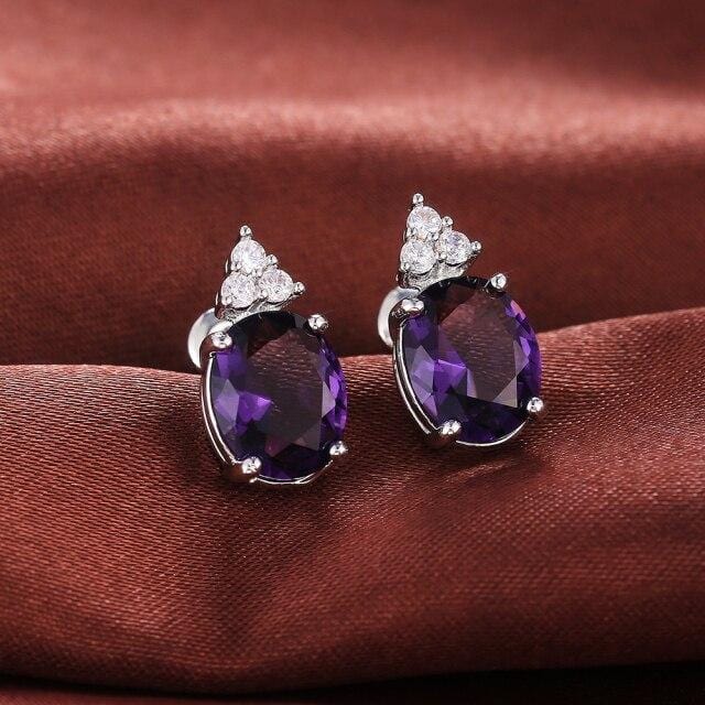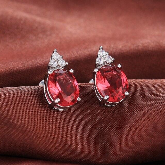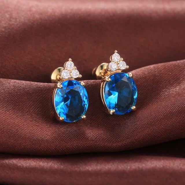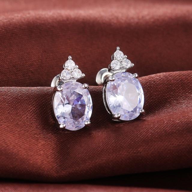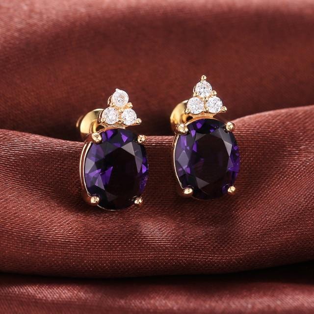 Huitan Luxury Big Oval Zircon Women Stud Earrings Simple Classic Design 8 Colors Versatile Female Earring Fine Gift Dropshipping
