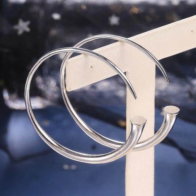 Huitan Simple Opening Hoop Earrings for Women Silver Color Metallic Versatile Style Fashion Female Earrings Classic Jewelry