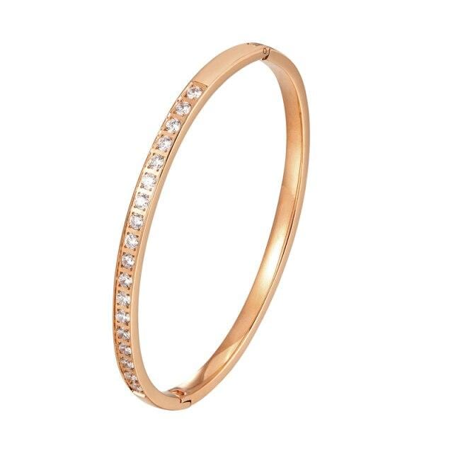 New Fashion Classic Inlay 18 Zircon Bangle For Women Stainless Steel Gold Color Bracelet Cuff Simple Trendy Feminina Jewelry