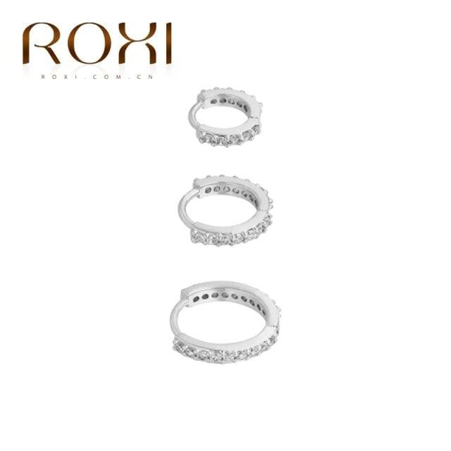 ROXI 3pcs Fashion Classic Wild Zircon Round Hoop Earrings for Women Girls Wedding Jewelry Cartilage Earring 925 Sterling Silver