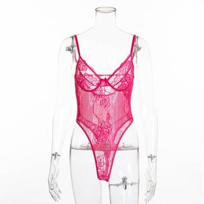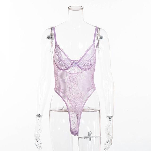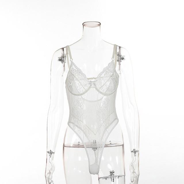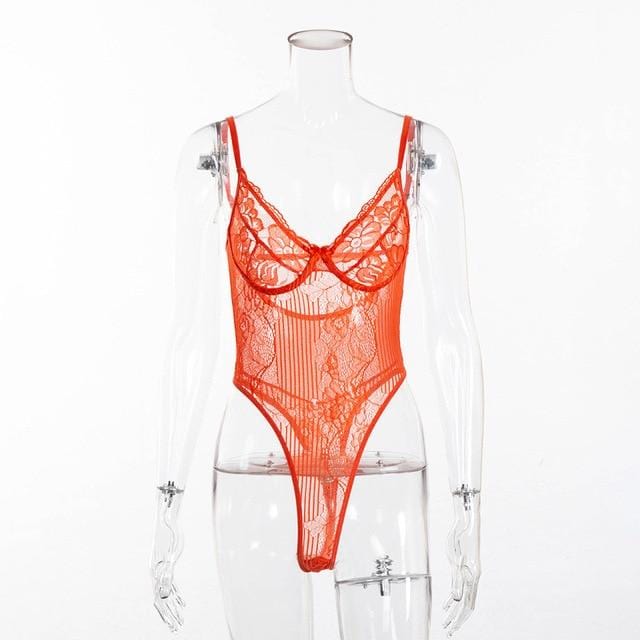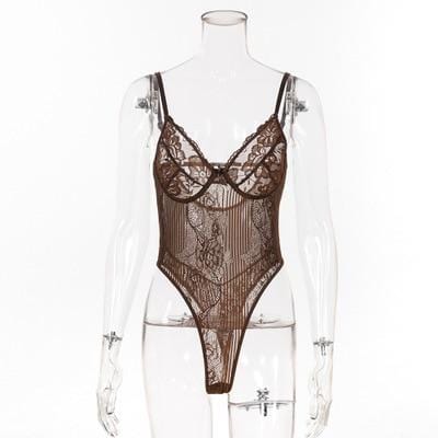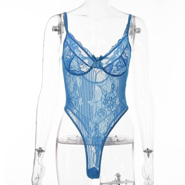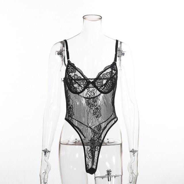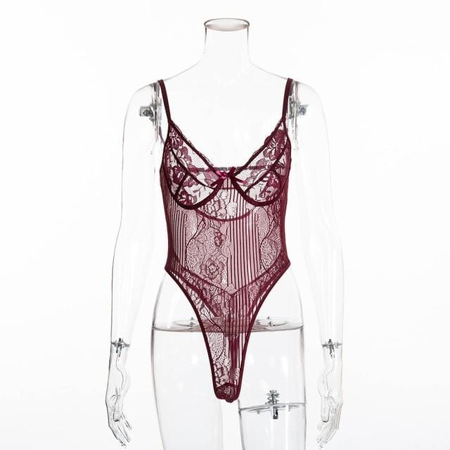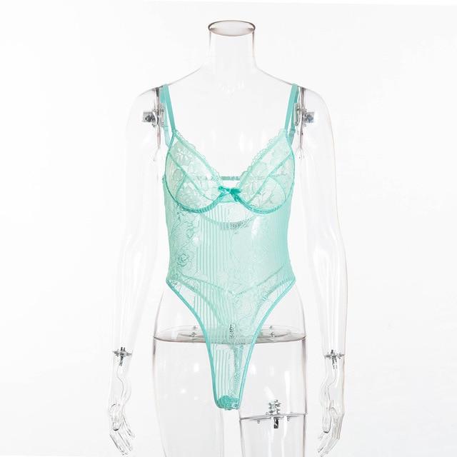 Cryptographic Hot Sale Sheer Lace Bodysuit Women Backless Transparent Mesh Bow Sexy Jumpsuit 2021 Catsuit Straps Bodysuits Thong