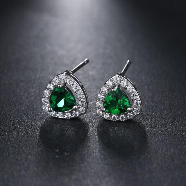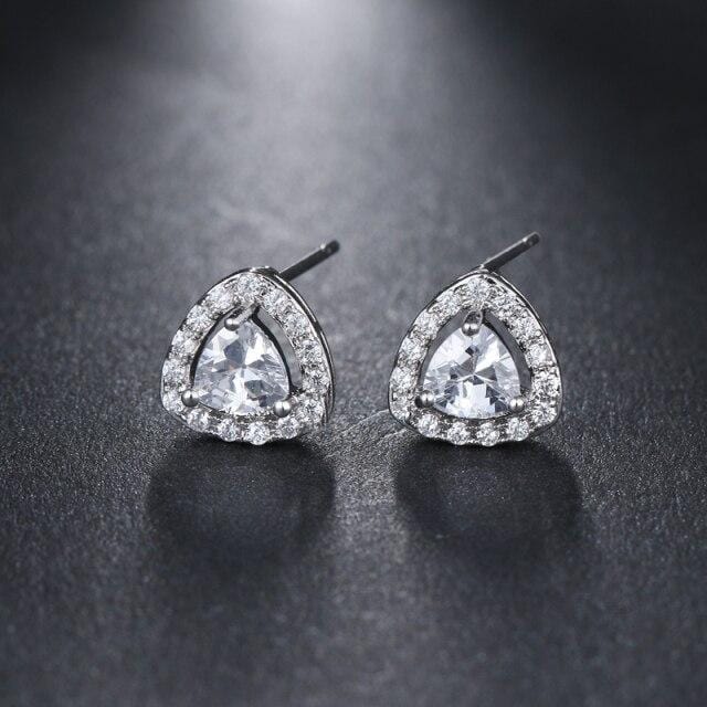 EMMAYA 3 Prong Setting CZ Crystal Triangle Stud Earrings Wedding Fashion Cz Jewelry for Women