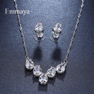 Emmaya Brand Elegance Charm AAA Cubic Zircon Heart Shape Crystal Earrings Necklace Set For Women Popular Bride Jewelry Gift
