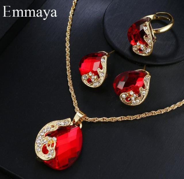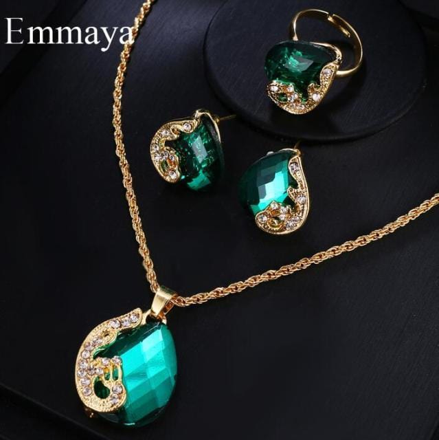 Emmaya Brand Fashion Luxury AAA Cubic Zircon Crystal Earrings Necklace Ring Set For Women Popular Wedding Jewelry Set Gift