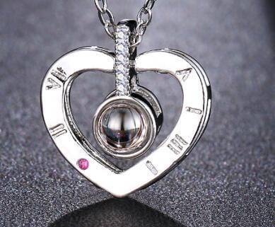 Emmaya Brand Rose Gold&White 100 Languages I love you Projection Heart Pendant Necklace Romantic Love Memory Wedding Pendant