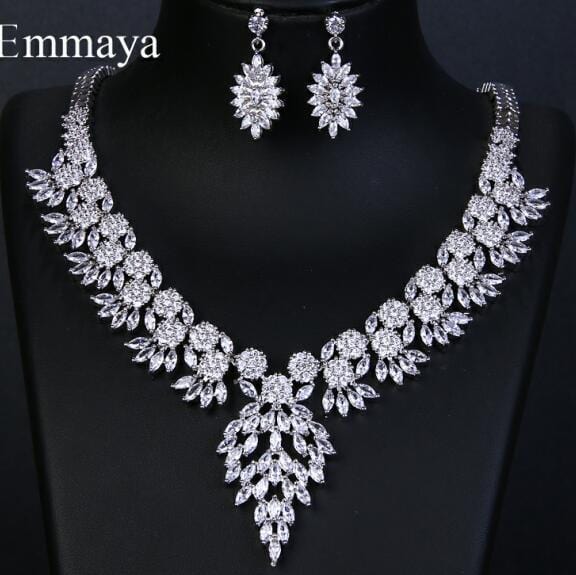 Emmaya Brand Sparkling Cubic Zirconia Crystal Zircon Flower Necklace and Earring Wedding Bridal Jewelry Sets Gift