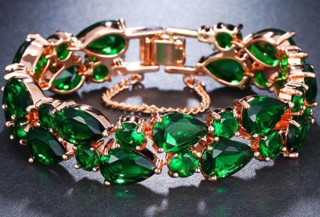 Emmaya Charm Rose/White Gold Color Mona Lisa Green and Blue Cubic Zircon Bracelets Bangles for Female Wedding Women Gift